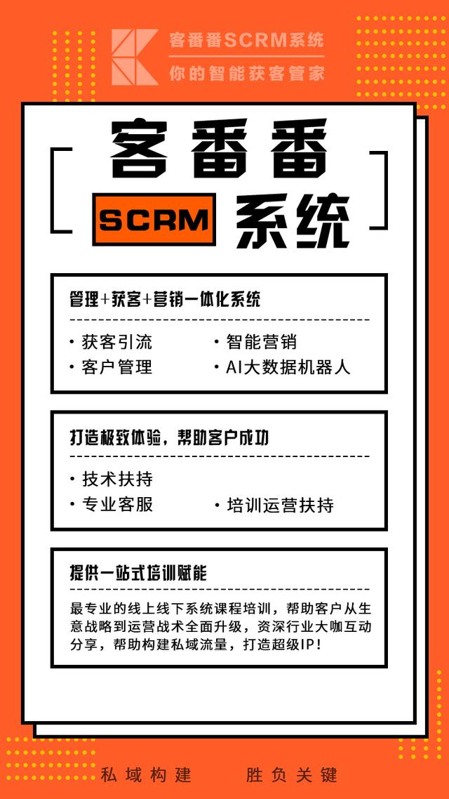 我们都知道做私域流量是一个专业且复杂的过程,目前都是大厂在做私域流量,财富密码也是掌握在少数人手中的,作为普通企业老板也想把握住私域这块蛋糕,这时候就出现了SCRM软件系统,它主要的目的就是帮助企业商家等建设私域而创造的一个智能营销系统,可以帮助想要做私域流量的企业提供一个系统工具,减少很多复杂的程序,我们做私域都是直接线上跟客户建立联系,没有任何一个企业想把辛辛苦苦引流来的客户变成僵尸粉吧?那么SCRM系统就实现了全套落地的实施系统,把你的私域流量盘活。