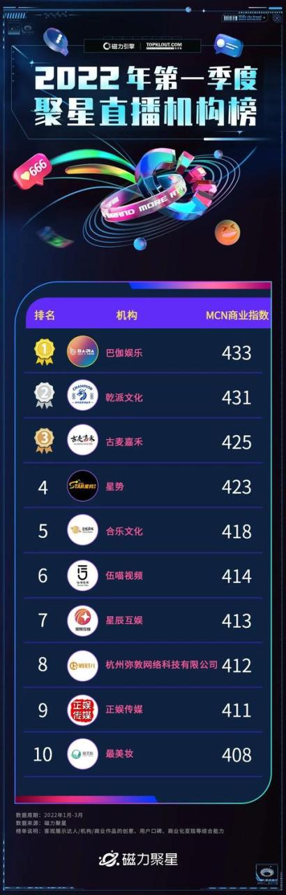 为了在快手平台生态在挖掘更多优势达人和他们背后的MCN机构,发现更多创造价值的可能,同时也让品牌主看到达人商业潜力。磁力引擎联合克劳锐发布2022第一季度磁力聚星榜单,榜单涵盖聚星热榜黑马榜、聚星热榜红人榜、聚星热榜机构榜三大部分,同时还包括聚星视频、聚星直播达人榜和聚星视频、聚星直播机构榜。
