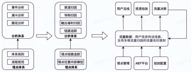 为了解决上述问题,我们需要一套系统化的解决方案。主要以数据中台工具能力建设为基础,基于埋点和归因体系化相结合,提出了一套全链路数据标准化生产、流量特色设计的数据体系建设方法论。