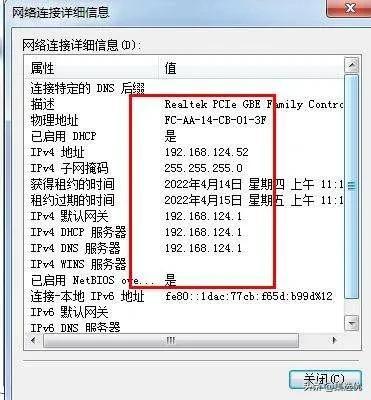 3、双击详细信息,记住ip地址、子网掩码、默认网关、DHCP/DNS服务器,最好拍照或者截图。